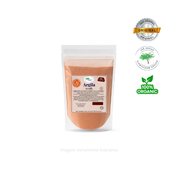 AArgila Vermelha Ipê Ervasé um produto 100% natural, de uso facial e corporal, extraída de solos ricos em minerais. Sua textura fina e cor clara resultam da alta concentração de silício e alumínio naturais.