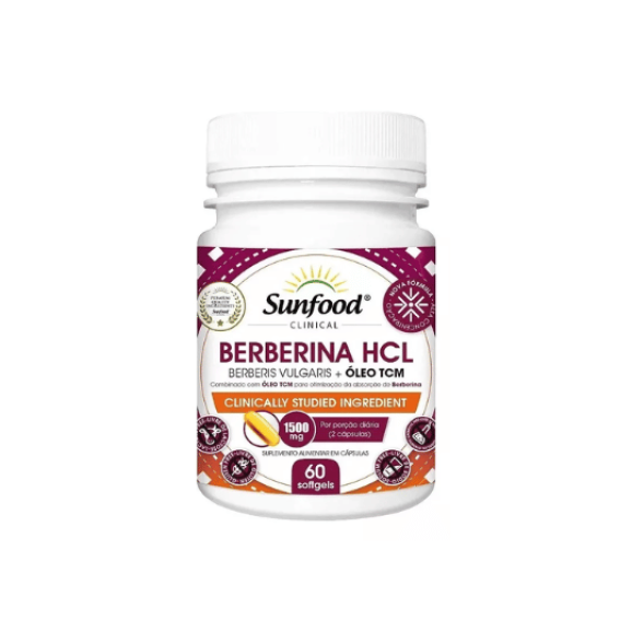 Aprimore a sua Saúde com a Berberina HCL com Óleo TCM da Sunfood Clinical - 60 Softgels para um Metabolismo Equilibrado e Coração Saudável!