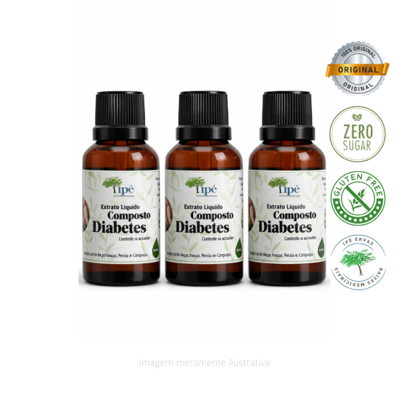 Extrato feito dePata-de-Vaca, Jambolão, Insulina, Melão-de-São-Caetano e Pau Tenente