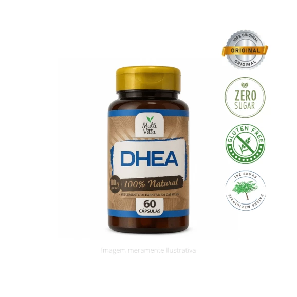 Com 100mg por porção, o DHEA da Multi Vitta é livre de glúten, lactose e derivados de soja, sendo uma escolha segura e prática para complementar a rotina de quem valoriza o equilíbrio e o bem-estar.