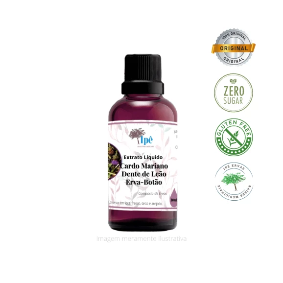 Extrato hidroalcoólico de Cardo Mariano, Erva-Botão e Dente-de-Leão.