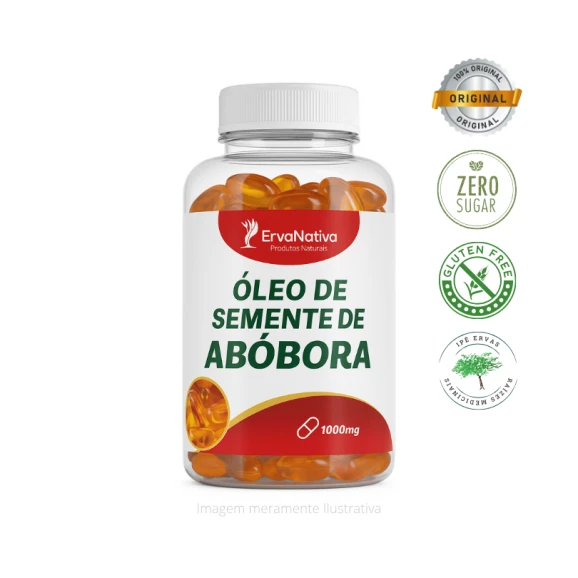 OÓleo de Semente de Abóbora Erva Nativaé um produto natural em cápsulas, elaborado com óleo extraído das sementes daCucurbita pepo L.. Apresenta-se em cápsulas práticas de 1000mg, ideais para quem busca praticidade no dia a dia.