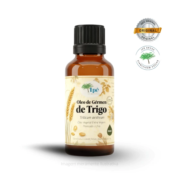 OÓleo de Germem de Trigo Ipê Ervasé extraído do núcleo do grão de trigo (Triticum aestivum), parte mais nobre e concentrada do cereal. Possui aroma característico, textura nutritiva e coloração dourada. É amplamente utilizado em cuidados cosméticos e formulações artesanais devido ao seu toque encorpado e natural.