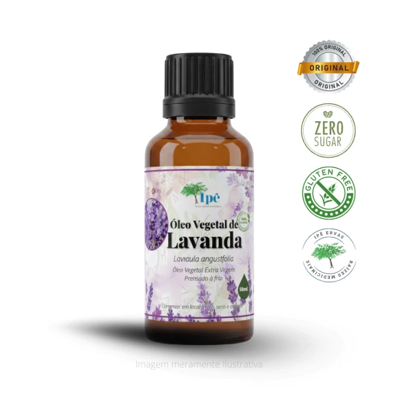 Óleo Vegetal de LavandadaIpê Ervasé um óleo natural produzido a partir da infusão das flores de lavanda (Lavandula spp.) em óleo vegetal puro, resultando em um produto delicado, com aroma floral suave e ideal para rotinas de cuidados pessoais.