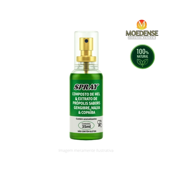 Spray Composto de Mel e Extrato de Própolis – Sabores Gengibre, Malva e Copaíba – Moedense Produtos Naturais