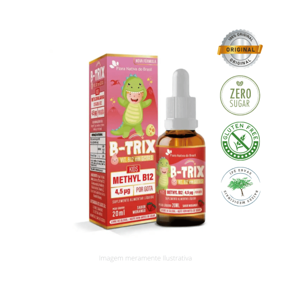 Vitamina B12 KIDS - Metilcobalamina, 30ml, Sabor Morango - Flora Nativa do Brasil